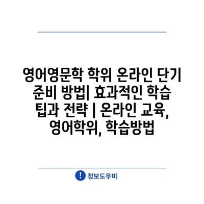 영어영문학 학위 온라인 단기 준비 방법| 효과적인 학습 팁과 전략 | 온라인 교육, 영어학위, 학습방법
