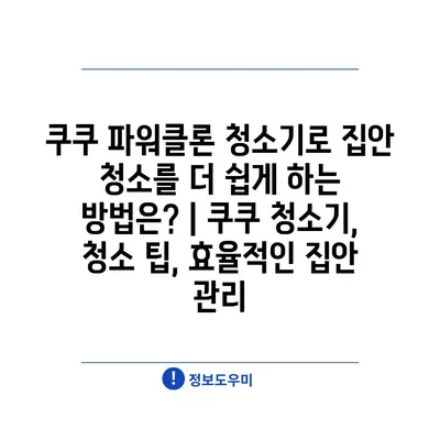 쿠쿠 파워클론 청소기로 집안 청소를 더 쉽게 하는 방법은? | 쿠쿠 청소기, 청소 팁, 효율적인 집안 관리