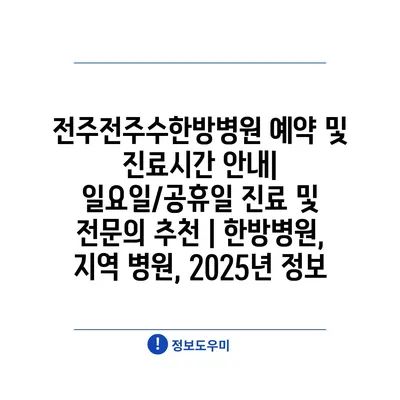 전주전주수한방병원 예약 및 진료시간 안내| 일요일/공휴일 진료 및 전문의 추천 | 한방병원, 지역 병원, 2025년 정보