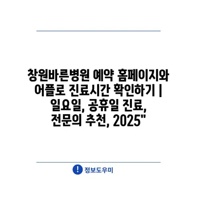 창원바른병원 예약 홈페이지와 어플로 진료시간 확인하기 | 일요일, 공휴일 진료, 전문의 추천, 2025″