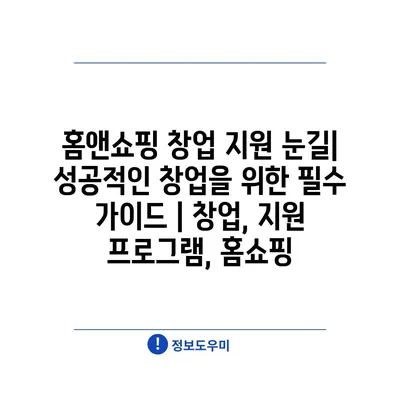 홈앤쇼핑 창업 지원 눈길| 성공적인 창업을 위한 필수 가이드 | 창업, 지원 프로그램, 홈쇼핑