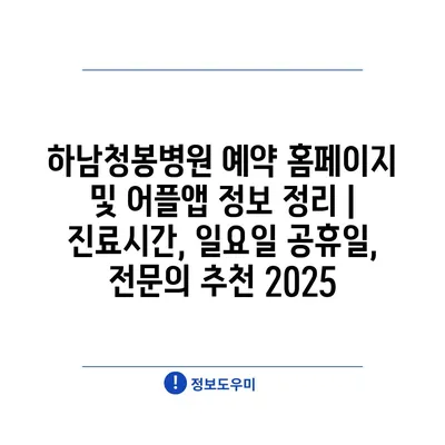 하남청봉병원 예약 홈페이지 및 어플앱 정보 정리 | 진료시간, 일요일 공휴일, 전문의 추천 2025