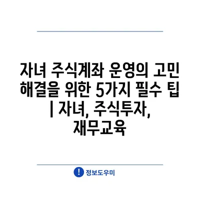 자녀 주식계좌 운영의 고민 해결을 위한 5가지 필수 팁 | 자녀, 주식투자, 재무교육