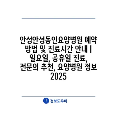 안성안성동인요양병원 예약 방법 및 진료시간 안내 | 일요일, 공휴일 진료, 전문의 추천, 요양병원 정보 2025