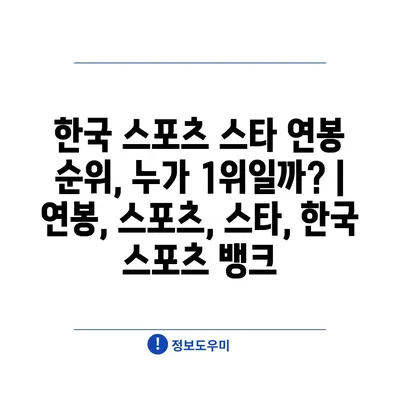 한국 스포츠 스타 연봉 순위, 누가 1위일까? | 연봉, 스포츠, 스타, 한국 스포츠 뱅크