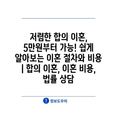저렴한 합의 이혼, 5만원부터 가능! 쉽게 알아보는 이혼 절차와 비용 | 합의 이혼, 이혼 비용, 법률 상담