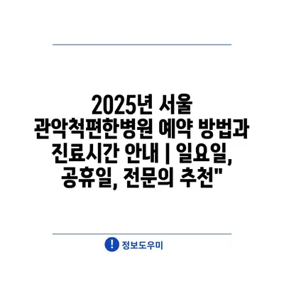 2025년 서울 관악척편한병원 예약 방법과 진료시간 안내 | 일요일, 공휴일, 전문의 추천”