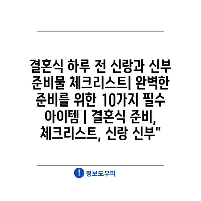 결혼식 하루 전 신랑과 신부 준비물 체크리스트| 완벽한 준비를 위한 10가지 필수 아이템 | 결혼식 준비, 체크리스트, 신랑 신부”