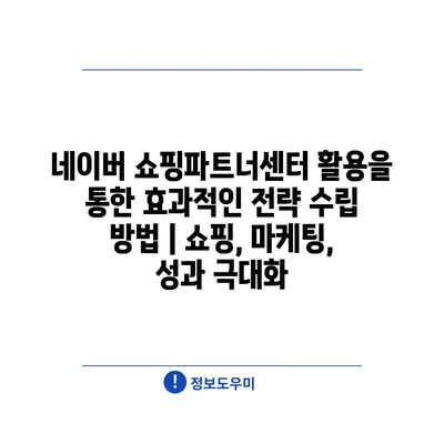 네이버 쇼핑파트너센터 활용을 통한 효과적인 전략 수립 방법 | 쇼핑, 마케팅, 성과 극대화