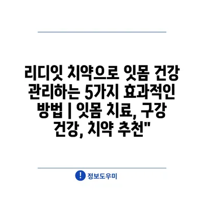 리디잇 치약으로 잇몸 건강 관리하는 5가지 효과적인 방법 | 잇몸 치료, 구강 건강, 치약 추천”