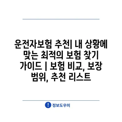 운전자보험 추천| 내 상황에 맞는 최적의 보험 찾기 가이드 | 보험 비교, 보장 범위, 추천 리스트