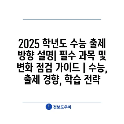 2025 학년도 수능 출제 방향 설명| 필수 과목 및 변화 점검 가이드 | 수능, 출제 경향, 학습 전략