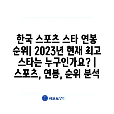 한국 스포츠 스타 연봉 순위| 2023년 현재 최고 스타는 누구인가요? | 스포츠, 연봉, 순위 분석