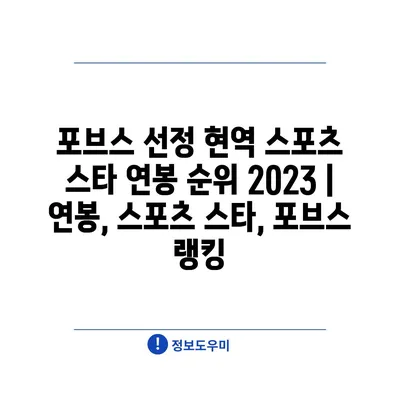 포브스 선정 현역 스포츠 스타 연봉 순위 2023 | 연봉, 스포츠 스타, 포브스 랭킹