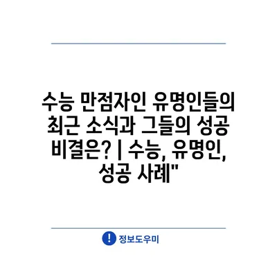 수능 만점자인 유명인들의 최근 소식과 그들의 성공 비결은? | 수능, 유명인, 성공 사례”
