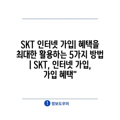 SKT 인터넷 가입| 혜택을 최대한 활용하는 5가지 방법 | SKT, 인터넷 가입, 가입 혜택”