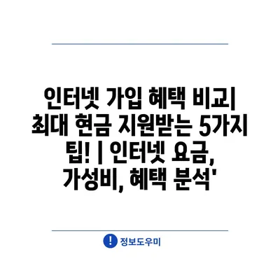 인터넷 가입 혜택 비교| 최대 현금 지원받는 5가지 팁! | 인터넷 요금, 가성비, 혜택 분석’
